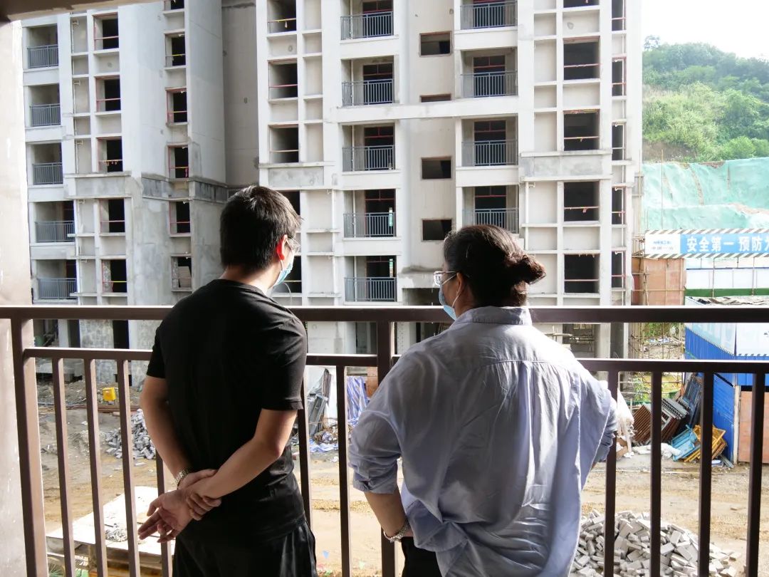 在生活配套服务设施项目现场,邓瑞仔细查看了职工住宿楼内电梯安全、入住条件、用水用工用电及道路施工建设推进情况。
