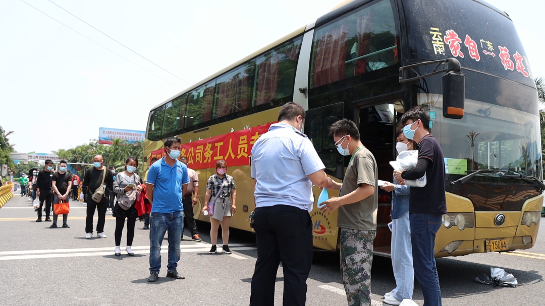 5月4日,河口北山高速收费站天朗气清、惠风和畅,悬挂着务工人员专车的横幅格外醒目。来自河口镇、桥头乡、坝洒农场的外出务工人员喜笑颜开,坐上了首趟“点对点”一站式“返岗专车”,从河口出发,前往广东深圳等地务工,实现了精准返岗。
