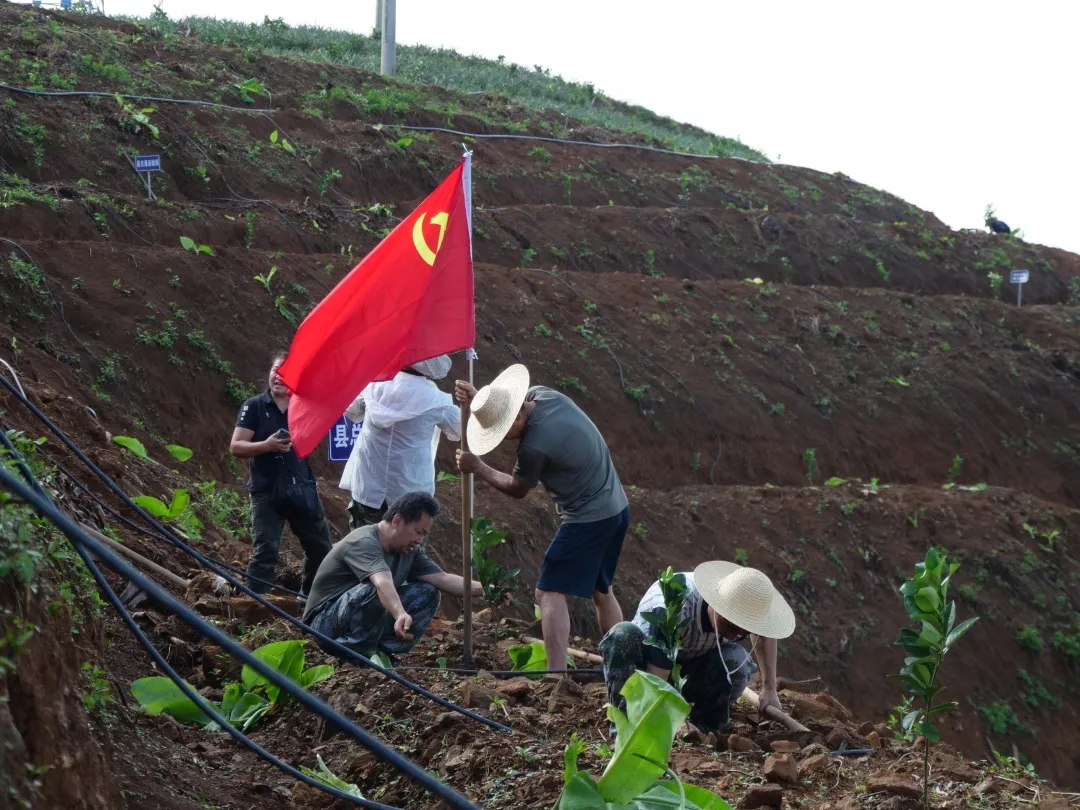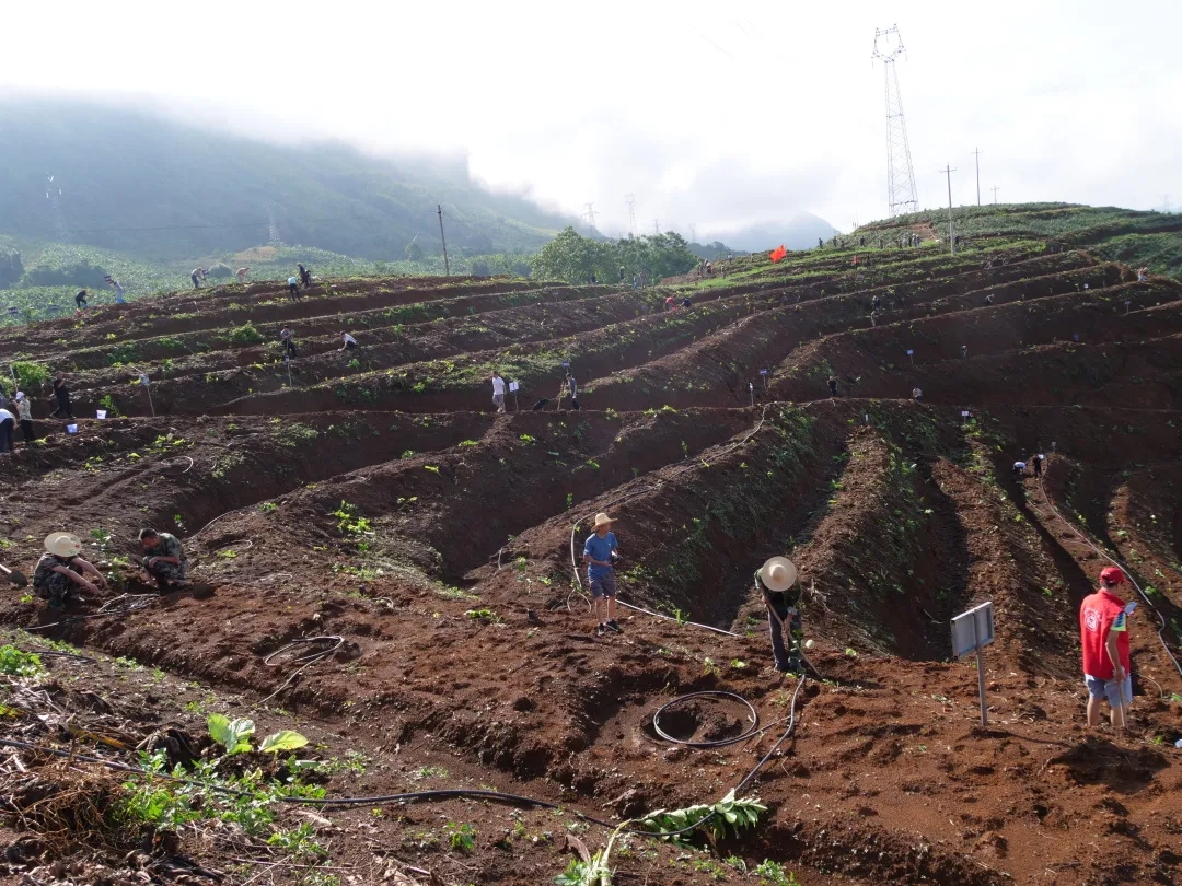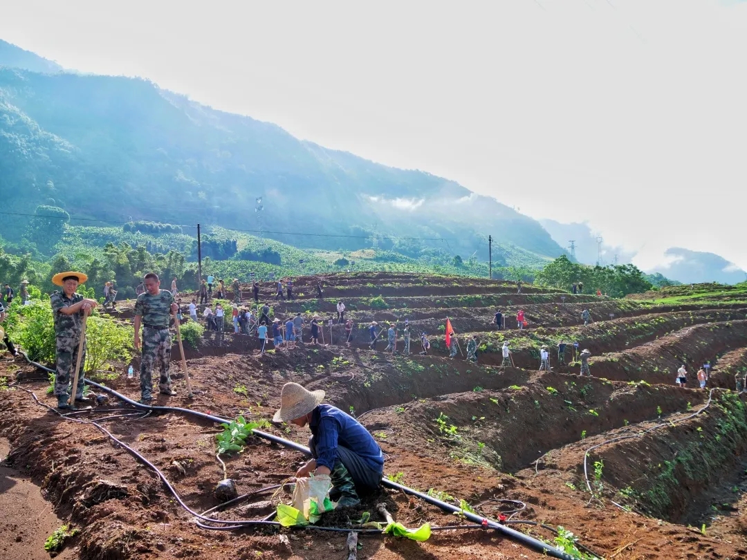 上午九点,于洋、邓瑞一行到坝洒农场金竹坪植树点,与广大干部职工一起义务植树,共建绿色家园。在技术人员进行栽种知识讲解和现场演示后,大家拿起铁锹、锄头,迅速投入到劳动中。挖穴、提苗、培土、踩实、浇水,现场一片忙碌,不一会儿,山上布满了点点绿色,一排排青皮柚树苗在阳光下迎风摇曳。