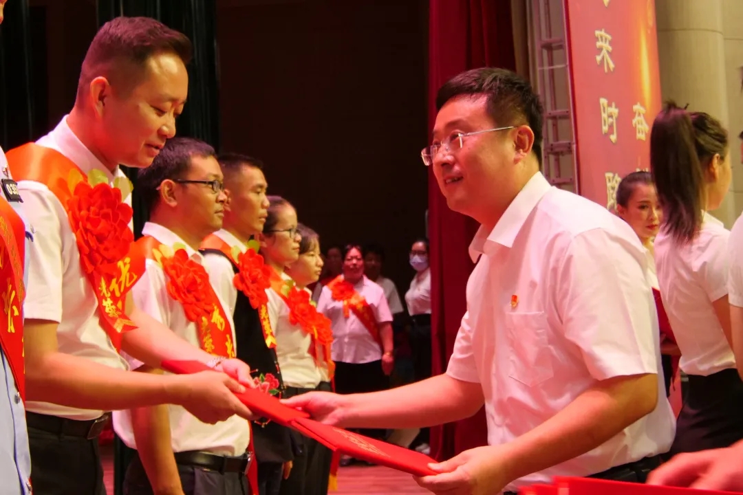 于洋代表县委向全县广大党员表示节日问候,向各行各业辛勤工作的共产党员以及为党的事业作出贡献的老党员们致以崇高的敬意,向受表彰的优秀共产党员、优秀党务工作者和先进基层党组织表示祝贺。