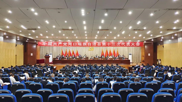 本次大会应到代表187名,实到代表183名,符合规定人数。邓瑞主持开幕式并宣布大会开幕。在雄壮的国歌声中,大会开幕。在热烈的掌声中,于洋代表中国共产党河口瑶族自治县第十二届委员会向大会作题为《立足新阶段 贯彻新理念 融入新格局 全力打造新时代开放安宁美丽自贸城》的报告。