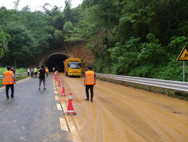 10月6日凌晨,河口县坝洒境内突降特大暴雨,且降雨时间持续较长,导致坝洒境内部分河流水位暴涨,并引发部分山体滑坡,326国道交通受阻,开河高速公路K210+670米曼路隧道入口处因泥石流滑坡致道路中断,坝洒曼美群众不同程度受灾。