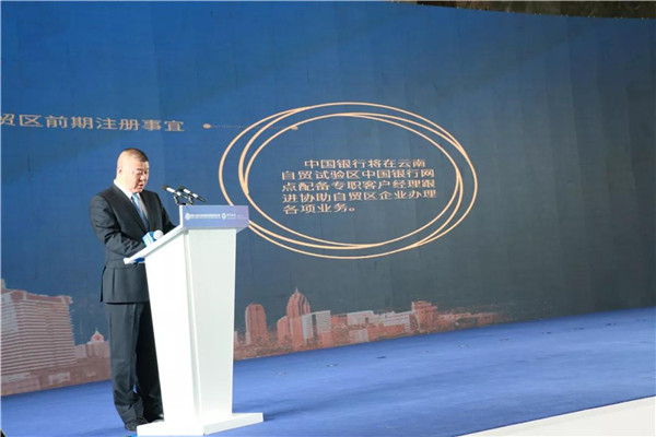 周洪源在致辞时指出,今年8月份,国务院印发了云南等6省设立自由贸易试验区的总体方案,标志着云南省正式进入到了自贸新时代。作为我国历史最悠久、国际化程度最高的商业银行,作为中国金融改革的坚定支持者和践行者,中国银行高度重视自贸区业务发展,积极发挥跨境金融服务优势,充分发挥总分行、海内外和综合化平台联动优势,全力参与自贸区建设,“大胆试,大胆闯”,致力于做“自贸金融服务先行者”,闯出一条自贸区金融服务的新路子。周洪源表示,下一步,中国银行将积极融入地方经济建设与社会发展,秉承“建设新时代全球一流银行”理念,充分发挥自身优势与经验,敏捷反应,锐意进取,开拓创新,开创共商共建共享的新局面,谱写创新开放合作的新篇章!