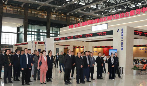 挂牌仪式上,赵祖平代表省司法厅讲话。他说,我们今天在这里为中国(云南)自由贸易试验区红河片区举行公共法律服务中心揭牌仪式,就是希望通过设立公共法律服务中心,力促红河片区的公共法律服务工作抓住自贸区试验区建设的良好契机,跨前一步,先行一手,闯出一条符合自贸区实际,具有可复制、可推广的工作路子。通过建立自贸区政府领导、司法行政机关主导、法律服务机构实施的红河片区公共法律服务中心,整合律师、公证、司法鉴定、法律援助、人民调解、仲裁工作等法律服务资源,为自贸区红河片区的企业和群众提供一揽子一站式综合法律服务。