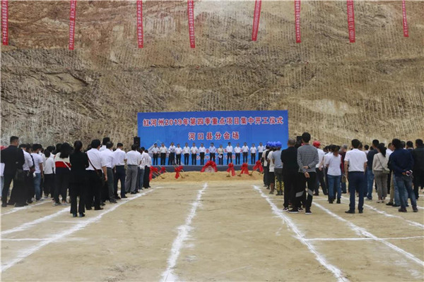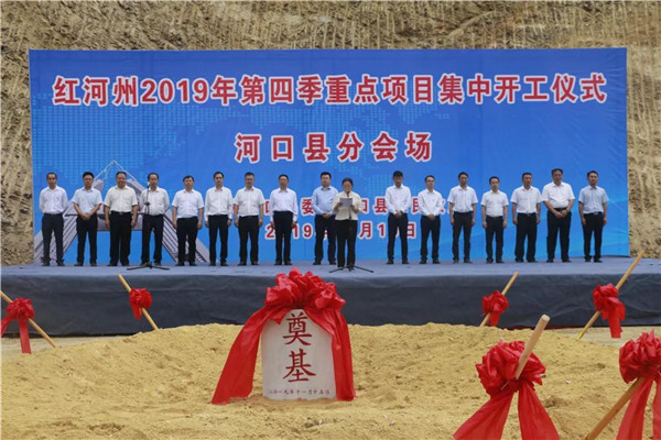 开工仪式上,杜应昆宣布中国(云南)自由贸易试验区红河片区、河口县2019年四季度重点项目正式开工。