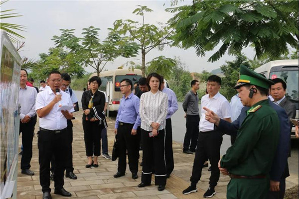 中越联合调研组先后实地察看了中越红河公路大桥、中国坝洒—越南巴刹红河界河公路大桥建设项目点、中国(云南)自由贸易试验区红河片区综合服务中心、南溪河口岸联检大楼建设项目点。