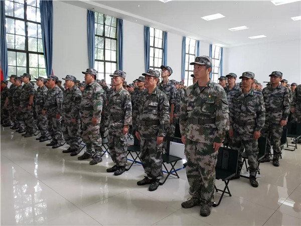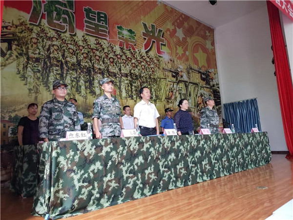 方鸫宣读了民兵干部任职命令,邓瑞为民兵应急连授旗。随后全体民兵一同宣誓,新入队民兵代表进行了发言。