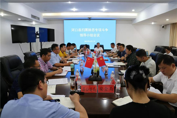 6月11日,河口县召开扫黑除恶专项斗争领导小组会议,领导小组组长、副组长以及县扫黑办主任、副主任参加会议。会议由县委副书记、县长、县扫黑除恶专项斗争领导小组第一副组长邓瑞主持。