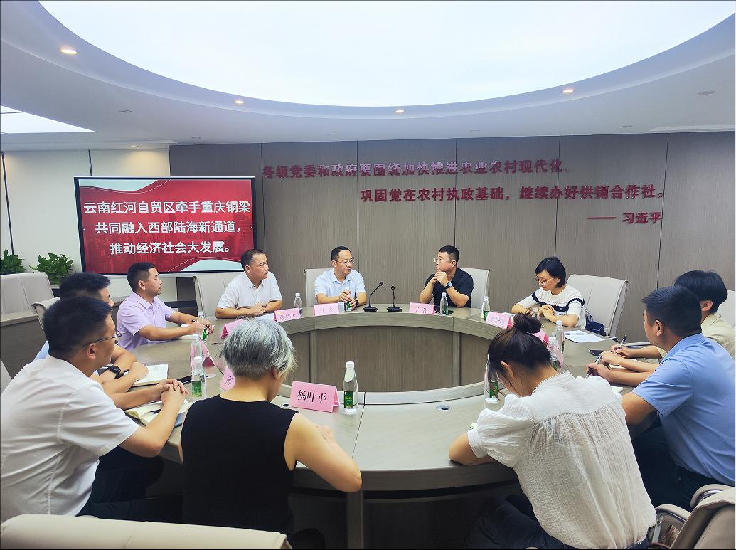 在重庆市铜梁区,考察组考察了重庆鑫佳宝食品有限公司,双方围绕火锅底料的来料加工和出口销售、农副“拳头”产品的进出口贸易等内容进行交流讨论,并在深化农副产品进出口贸易及落地加工等方面达成合作共识。