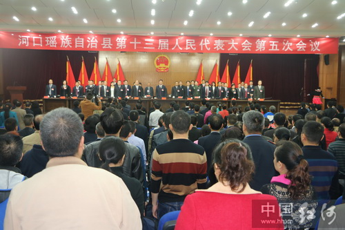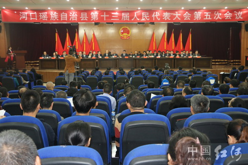 1月8日,河口瑶族自治县第十三届人民代表大会第五次会议在行政中心隆重开幕。大会应到代表142人,实到代表129人,符合法定人数。县委副书记范正平,县政协主席韦海军等领导出席会议并在主席台前排就坐。大会由县人大常委会主任林国才主持,参会代表认真听取了《政府工作报告》,举手表决通过了《大会补选办法(草案)》。