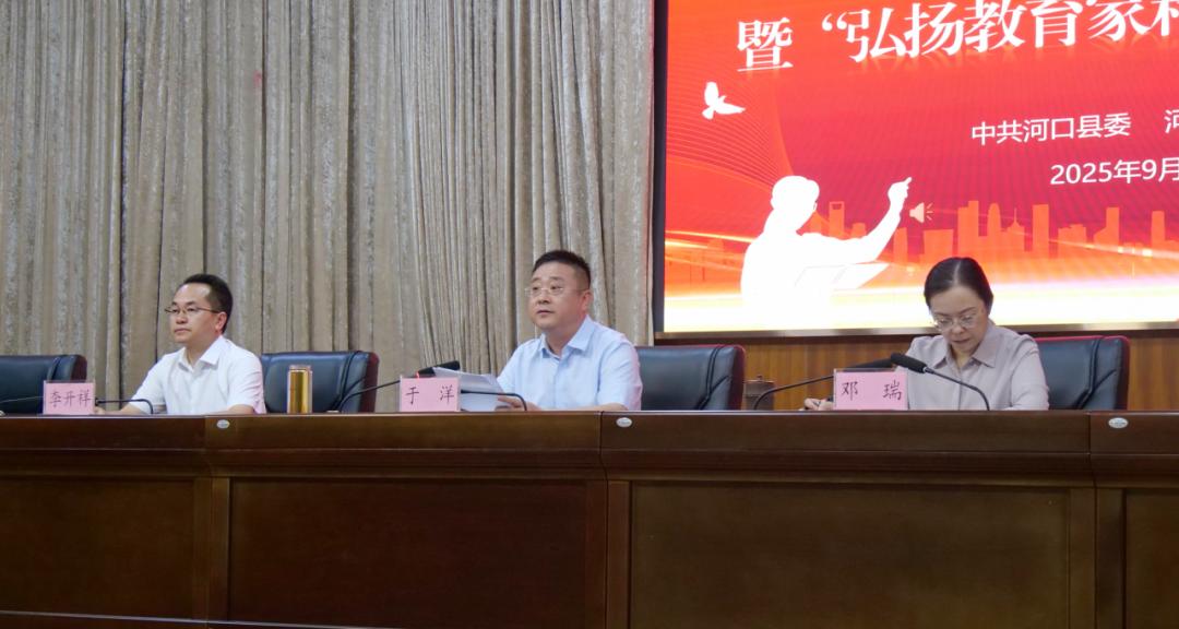 于洋表示,今天不仅是教育者的节日,更是共商全县教育发展大计的契机,他代表县四套班子,向辛勤耕耘在教育战线的全体教师、教育工作者及其家人,致以节日的诚挚问候和崇高敬意。于洋强调,要全面落实立德树人根本任务,全力办好人民满意的教育,坚决守牢校园安全底线,全面深化教育综合改革任务,建强高素质教育队伍,合力保障教育高质量发展,以坚定决心、务实作风、有力举措砥砺奋进,共同谱写河口教育高质量发展新篇章。