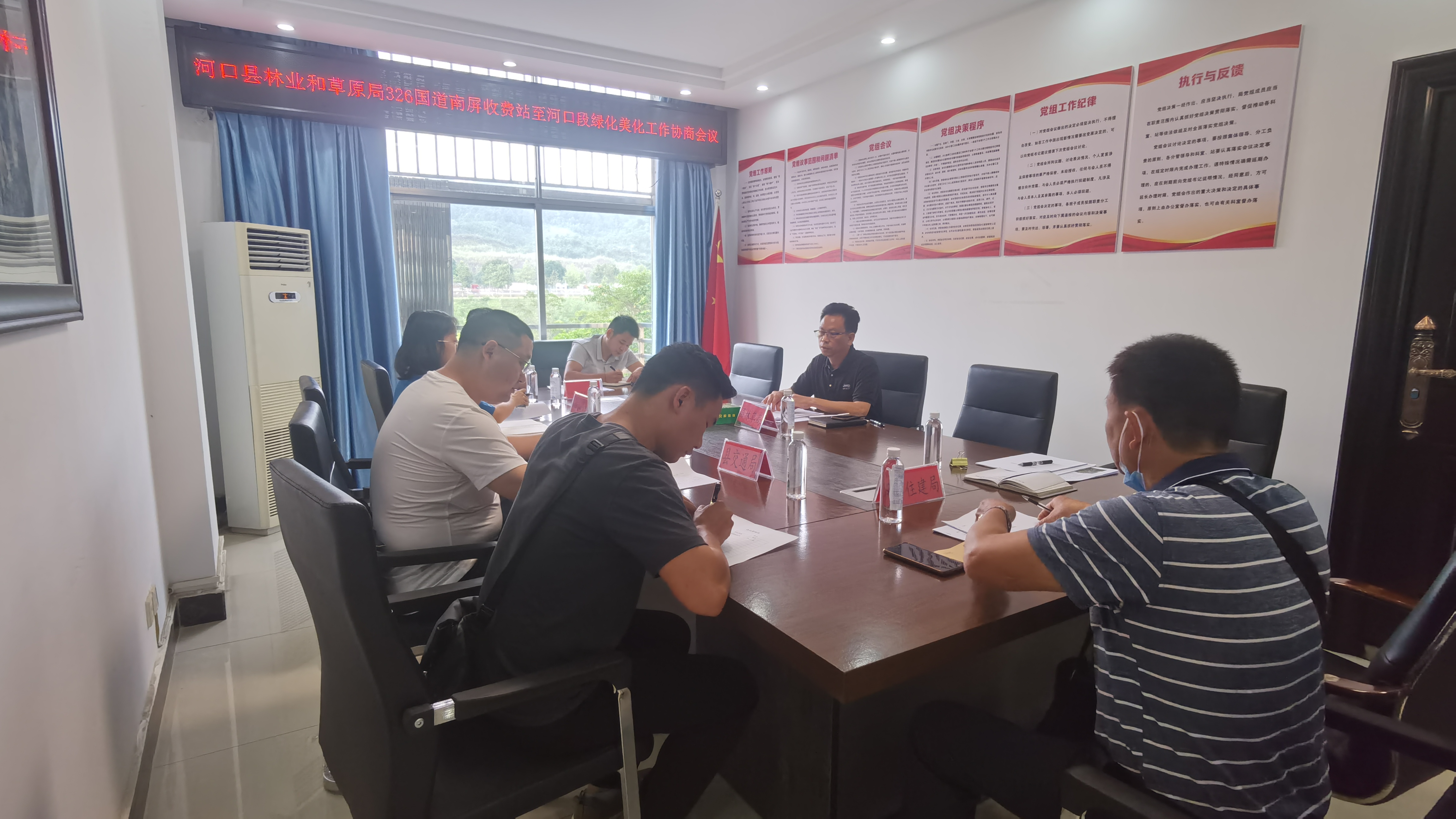 为践行习近平生态文明思想,筑牢绿色发展的鲜明底色,推进交通沿线增绿扩美,提升交通沿线绿化美化水平,突出河口县地域文化特色。2023年6月8日上午,县林草局副局长邓永利在县林草局三楼会议主持召开关于326国道南屏收费站至河口段绿化美化协商会议,邀请河口公路分局、县交通局、县住建局、河口坝洒农场有限责任公司分管领导及技术员参加会议,共同协商关于326国道南屏收费站至河口段绿化美化相关事宜。县林草局副局长邓永利就开展此项工作背景、目的、必要性以及预期成效做介绍,并提出相关要求:326国道南屏收费站至河口段种植观景植物,凡有条件种植观景植物路段做到全覆盖,提升交通廊道美感度,相关参会领导围绕该议题做了发言。