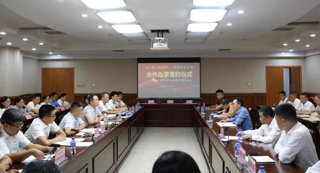 10月31日,河口县人民政府与云南师范大学签订合作办学协议,并共同为“云南师范大学附属河口国门高级中学”揭牌,通过资源共享、优势互补,共谱校地合作办学新篇章。云南师范大学副校长孟庆红,县委常委、县委统战部部长庞汉元,县人大常委会副主任苏东才,县人民政府副县长卢光荣,县政协副主席杨庆等出席活动。