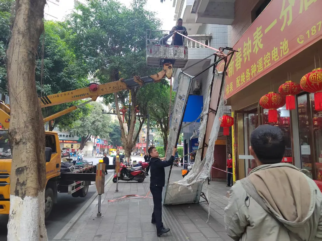 户外广告设施是展示城市形象的重要窗口、是城市公共空间的重要组成部分。美观,让它成为一道动人的风景线;安全,则是它不可逾越的生命线。唯有二者兼备,才能实现城市“颜值”与“安全”的双赢。为切实做好春节前安全隐患排查工作,保障市民出行安全,河口县综合行政执法一大队于近期组织开展了城区户外广告设施安全隐患拉网式排查整治。