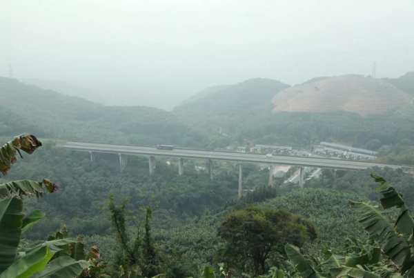 再顺着村庄向上看去,蒙河高速公路湖广4号大桥从寨子的后方飞跨而过,像是一支有力的大手,把湖广寨拥入怀中。从公路上俯视整个湖广寨,便可把整个湖广寨的全貌收入眼底,青瓦白墙,名花异草,顿时映入眼帘。站在半山腰往下看,那满山的绿、那雄壮的桥,那别致的村庄,还有那若隐若现的水塘便成了一幅嵌在自然中的美丽画卷。