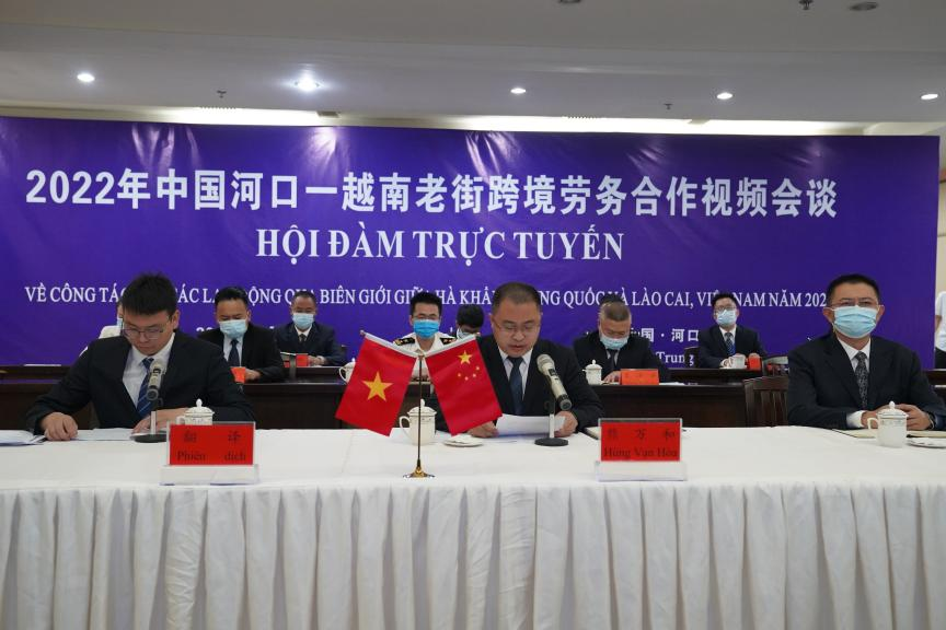 11月1日,以河口县人民政府副县长熊万和为团长的中方代表团与以越南老街省劳动荣军和社会厅厅长丁氏兴为团长的越方代表团以视频会议的形式举行中国河口—越南老街跨境劳务合作会谈,共商跨境劳务合作事宜。
