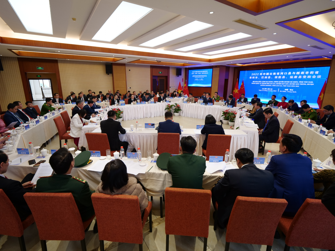 12月23日,中国云南省河口县与越南老街省老街市、巴刹县、保胜县、猛康县2022年党政会谈在河口县举行,双方达成多项共识。