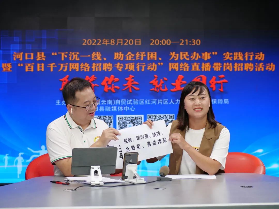 8月20日,由中国(云南)自由贸易试验区红河片区人力资源和社会保障局和河口县融媒体中心联合举办的“职等你来 就业同行”直播带岗活动圆满落幕。