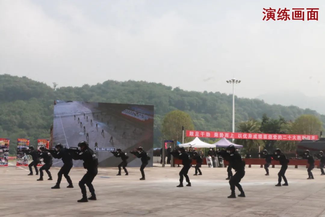 活动上,全体与会人员一同观摩了夏季治安打击整治“百日行动”展板及党的二十大安保维稳装备和警务科目汇报演练,观看了夏季治安打击整治“百日行动”工作视频汇报片。演练现场,公安民警们衣着统一、整齐列队,一声令下,他们迅速反应,一字排开,整齐有力地完成规定动作,赢得阵阵掌声。特种组战术、查缉现场警情处置、伸缩警棍术、警犬基础动作、防暴处突等各类项目,充分展示了他们的专业技能和水平。
