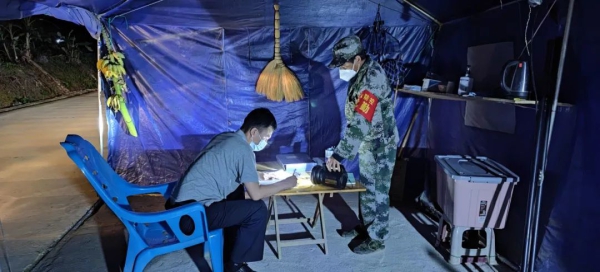 阮凯宇和严栋是南溪镇大南溪村驻村工作队的“好兄弟”,他们把青春的足迹留在大南溪村的每条小路上。迷彩胶鞋是他们的“风火轮”,在人员排查、入户宣传动员中跑出了青春的速度,胸前党员徽章是他们的“请战牌”,一切只因为“我年轻,我先上”。