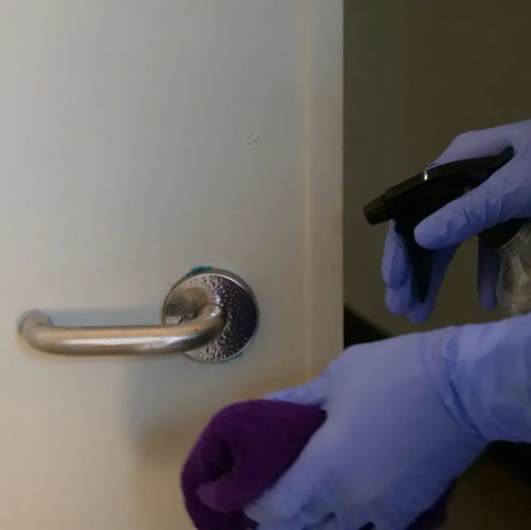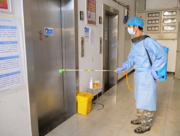 每天消杀员都会对小区进行全覆盖、无缝隙的消毒,确保小区单元楼道、单元门和门把手、垃圾箱等重点区域消毒准确、到位。认真负责、一丝不苟的工作态度给小区居民营造了干净整洁的环境,为他们筑起一道疫情防控安全屏障。