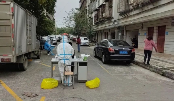 自开展区域核酸检测以来,为保障人员不聚集、不扎堆,核酸检测能安全有序高效进行,北山社区第一片区采取多点位、分批次的方式开展。以“志愿者+医护人员”的组合,每个组合有3—4人,分别负责分批次叫人、信息录入、核对、核酸采集以及维持秩序等工作,对于行动不便的特殊人群以“上门采样”的形式进行,以确保核酸检测“不漏一户,不漏一人”,核酸检测的过程井然有序。