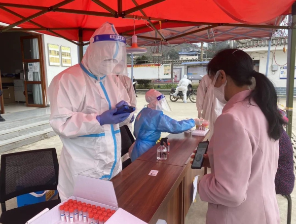 3月10日下午,瑶山乡开展常规抵边小组核酸检测。检测现场,在工作人员和医护人员及参与采样的人员相互配合协作下,核酸采样工作有条不紊地进行。“您好!”正在录入下一个采样人员信息的工作人员听到身后稚嫩的嗓音,转过身看向声源处。一个扎着马尾辫,穿着黑色外套的小女孩有些羞涩地上前,将一张纸递到了工作人员的手中,接着转身跑回了站在一旁的妈妈身后。“这是我家孩子送给你们的礼物,说谢谢你们,你们辛苦了!”