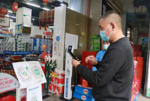 河口县加大民生保障力度,全面督促各大超市严格落实疫情防控工作各项规定。记者在北山兴隆超市入口看到,市民进入超市前都要规范佩戴口罩、接受体温检测、扫码后方可进入,并在入口处放置了液体酒精、洗手液方便市民使用。同时,超市加强对从业人员的日常体温监测登记和核酸检测。