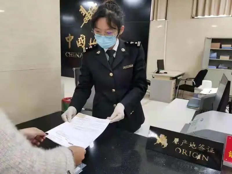 2022年1月1日,为《区域全面经济伙伴关系协定》(RCEP)实施首日,当日上午9点18分,在河口海关报关大厅内,海关关员正在对云南首份中越两国间RCEP原产地证书进行审核打印,该票证书是玉溪某公司销往越南的一批苹果,价值10.2万元,预计可为企业申请进口国关税减免5000余元。