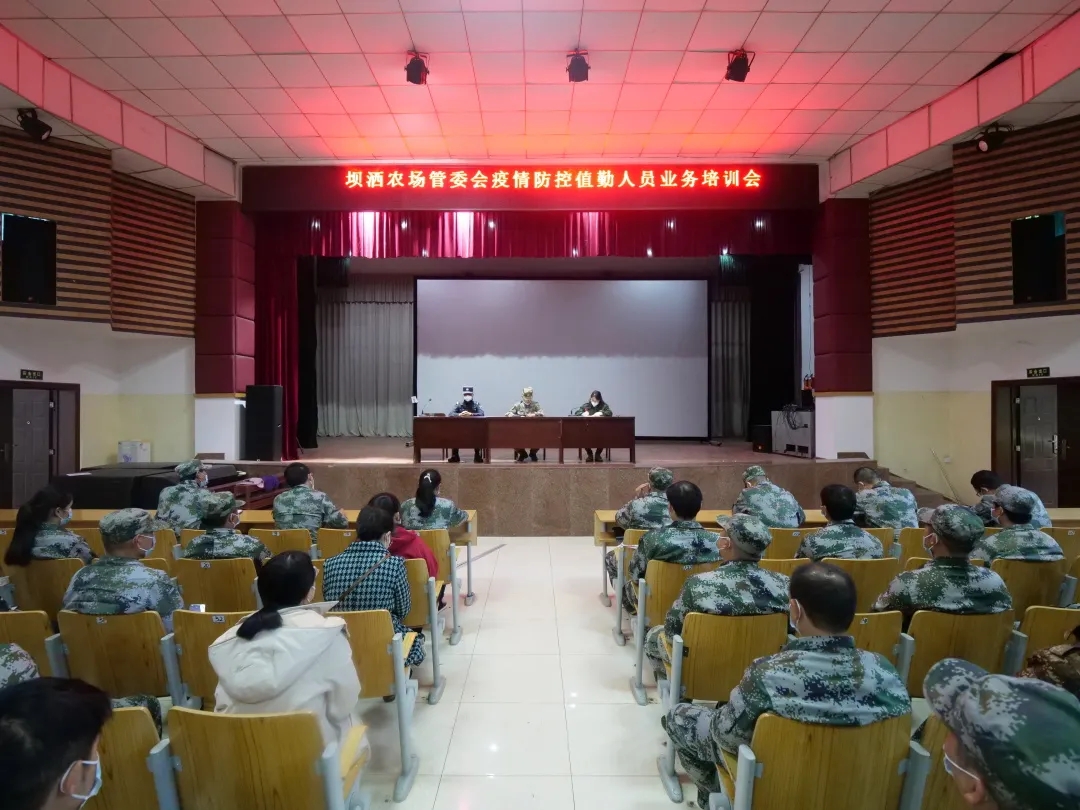 1月11日,坝洒农场管委会组织开展疫情防控执勤人员业务培训,加强对一线执勤人员的法律法规宣传教育和业务指导,进一步强化疫情防控和边境管控。