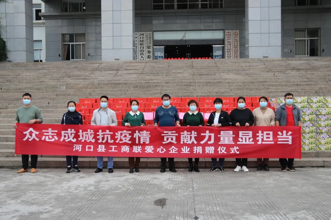 据统计,2021年以来,在河口县工商联的统筹协调下,有来自河口县以及云南省内外的10多家爱心企业或单位,向河口疫情防控指挥部捐赠了口罩、防护服、隔离衣、酒精、大米、方便面、矿泉水、水果、蔬菜等抗疫物资,总价值25万余元。