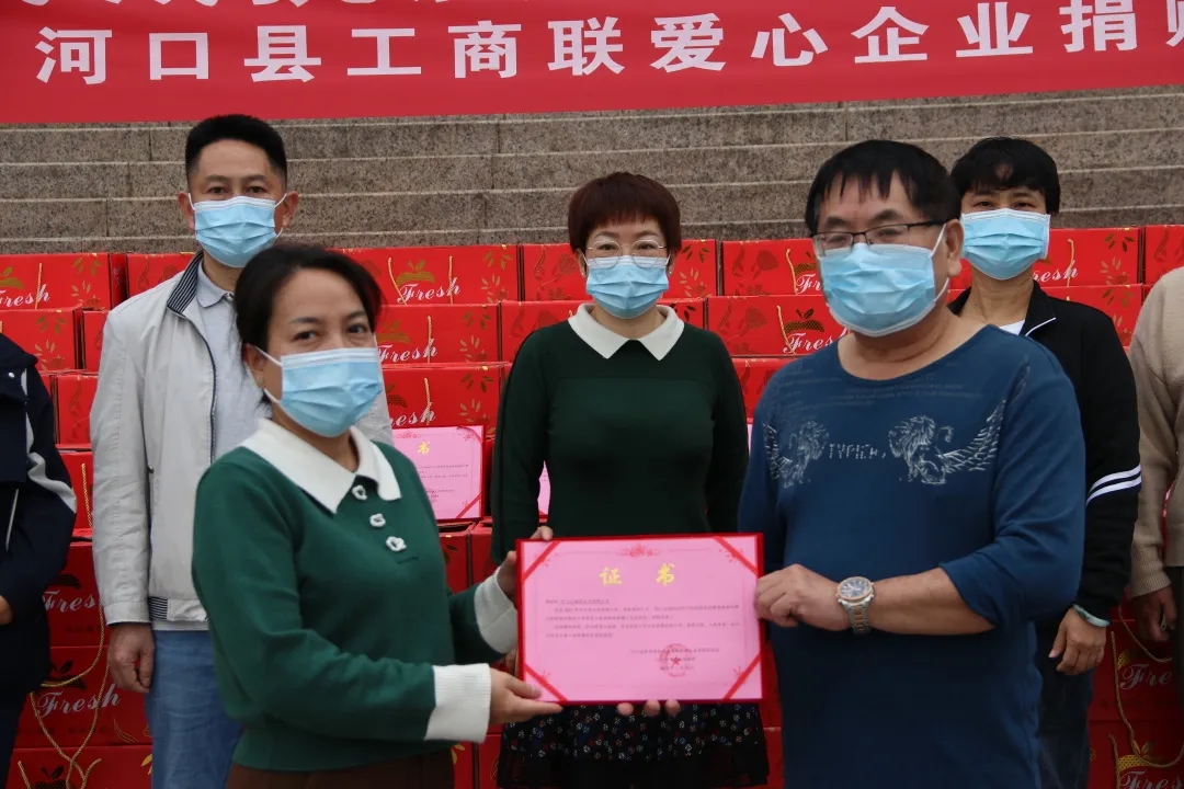 1月26日,在新春佳节即将到来之际,河口县工商联、爱心企业联合向边境疫情防控一线值守人员捐赠了360件水果,给他们送去了节日的祝福和问候。