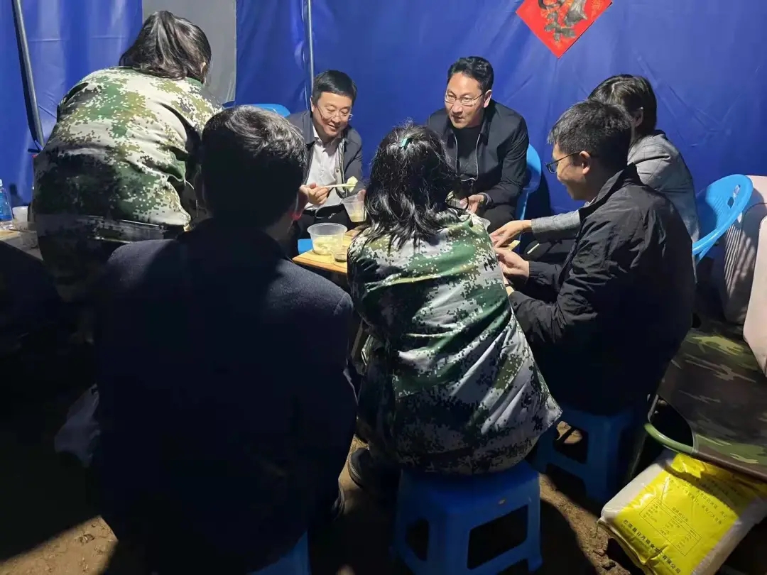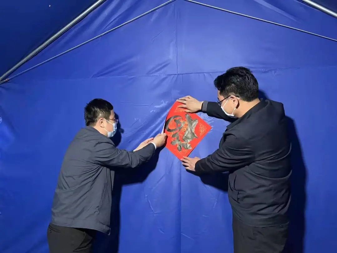 字振华详细询问了解河口县委宣传部干部职工参加一线值守的轮班情况、工作和生活情况,向大家致以节日的问候和衷心的感谢。随后,字振华、于洋一起为七队河沟执勤点挂灯笼、贴福字,与执勤的干部围坐在一起吃饺子,执勤点洋溢着一派别样的新春佳节氛围。