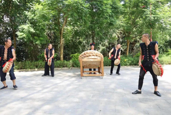 “这个地方要加大力度,才能敲出节日热闹的气氛……”在瑶山乡盘王广场上,年轻的瑶族动鼓队队长李信强正带领他的队员们进行排练,一招一式,一举一动,一颦一笑都充满了民族的韵味。作为云南省唯一的瑶族自治县,河口的瑶族文化历史悠久,源远流长,为了让这一古老的文化走出口岸,走向世界,2008年,瑶族文化工作者邓国群组建了河口瑶族动鼓队,积极参演全县重大活动、重要节日庆典,传统的乡土文化逐渐成为上得了台面的文艺“顶梁柱”,2021年,动鼓队积极排练节目参加“文化和自然遗产日”表演,还组织拍摄瑶族动鼓舞报备参加红河州民族民间歌舞乐筛选节目。”