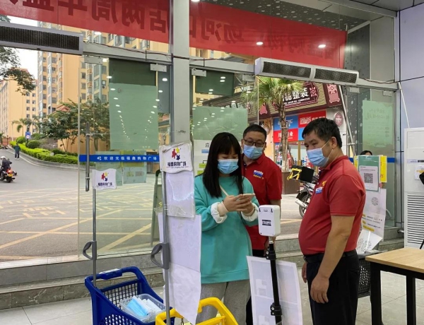 在河口县福鑫购物广场,记者看到,入口处不但配备了电子测温设备,还无偿为顾客提供了口罩,保证进入超市人员一律佩戴口罩,除此之外,超市对从业人员管理和场地消杀工作也实现了精细化和常态化。