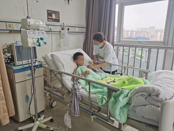 8月16日,浩浩靠坐在病床上,精神状态不错,脸色红润,如果不是身上还插着管子、贴着纱布,仅看脸色完全不像刚做完大手术的样子。