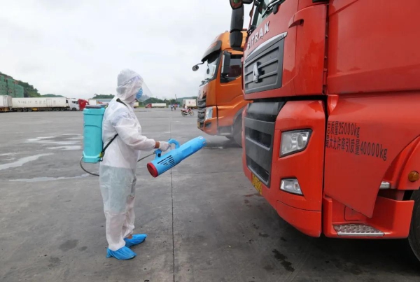 物防—应防尽防。向重点从业人群发放口罩、防护服和手套等防护物资,严格要求进入货场人员必须佩戴口罩,跨境驾驶员必须着防护服,并在重要卡点发放电子体温计,对来往人员进行体温测量并做好登记工作。同时,对货场、办公区等重点场所每天一消毒。