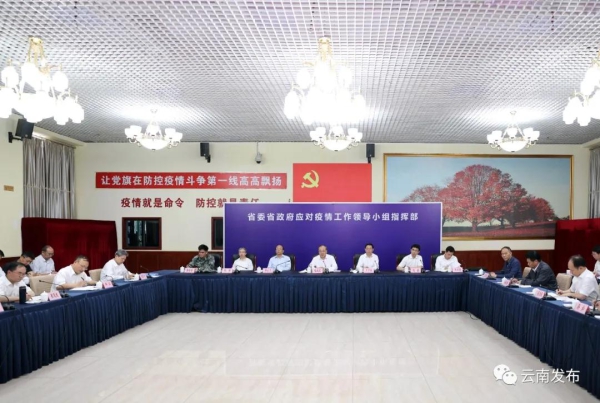 会议听取省委省政府应对疫情工作领导小组指挥部和陇川、耿马、勐海3个边境县的情况汇报。