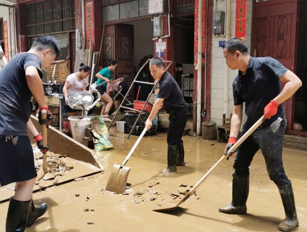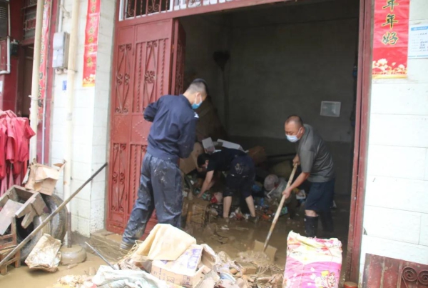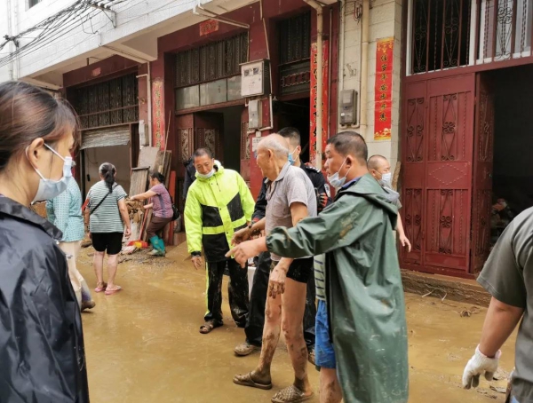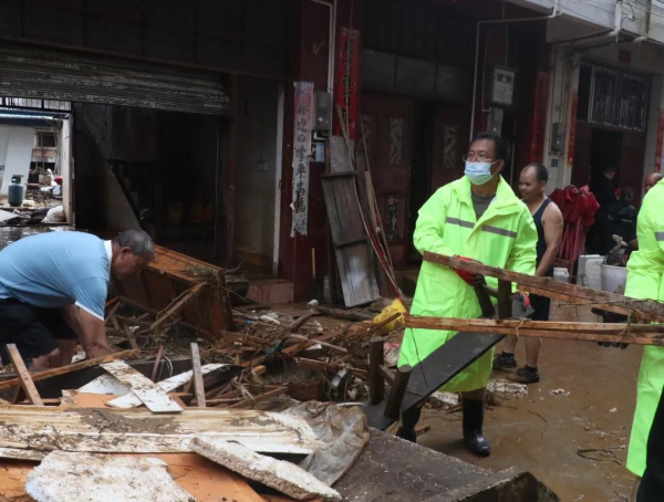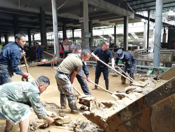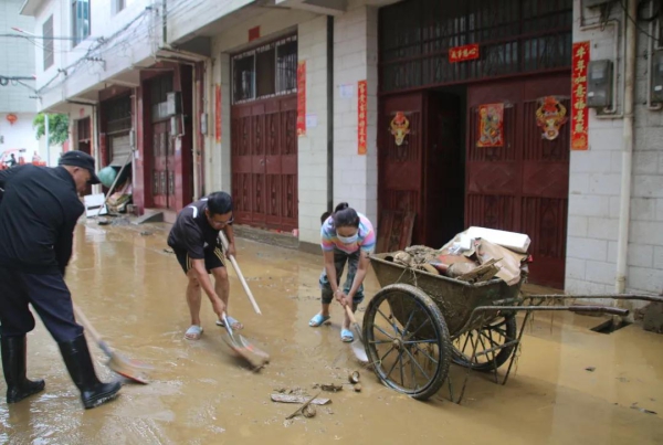 县级相关单位人员、桥头乡干部职工、村组干部齐心对受灾民房、农贸市场开展清淤冲洗工作,截至15日18时,已完成62间民房清淤工作,农贸市场清淤和民房防疫消毒工作正有序进行。