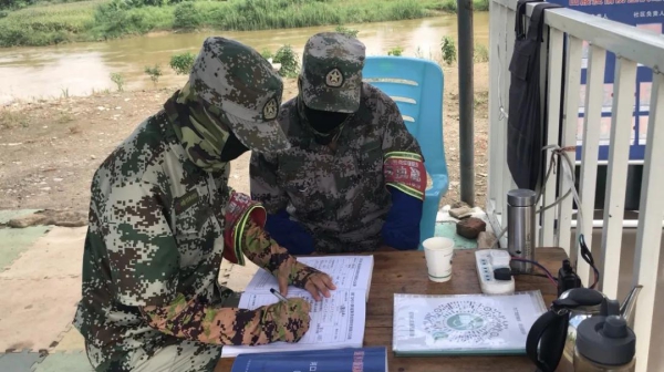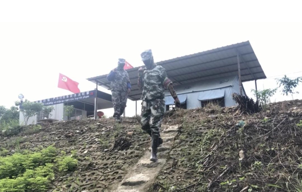 7月10日下午3点,记者走访了河口县中越边境106号界碑第5执勤点,炎炎夏日,地表温度超过40度,47岁的贺丽和58岁的李莲芬正顶着高温在执勤。贺丽告诉记者,即使全副武装,也难敌烈日的炙烤,可是她们义无反顾。随后,记者跟随她们走了每天工作都要走的巡逻路,走了不到一公里,就觉得酷暑难耐,而身着迷彩装的贺丽和李莲芬,每天要多次巡逻,徒步近3.5公里。