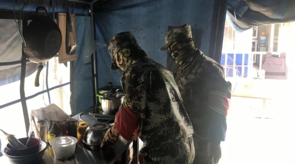 没有条件,疫情防控人员创造条件,也要坚守岗位。在党员的带领下,大家齐心协力,在确保完成值守巡逻工作的同时,下夜班的人员也主动放弃轮休,架水管、建厕所、种蔬菜,通过近半年的努力,现在执勤点的条件有了很大改善。贺丽和李莲芬在巡逻完,赶紧给小葱和辣椒浇水,她们说,平时为了节约时间,一般煮粥和煮面是最方便的,周围种植的蔬菜量不多,只能满足吃粥吃面的需要。