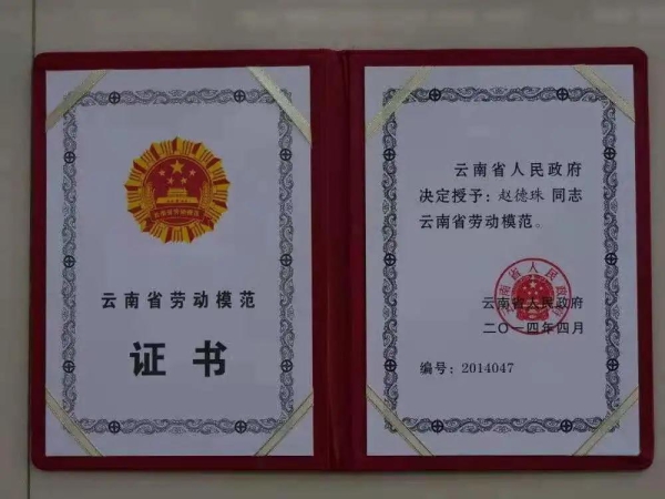 年复一年,日复一日。凭着对割胶事业的热爱与执着,赵德珠的努力得到了越来越多人的认可,多次代表南溪农场、红河农垦河口橡胶分公司、云南农垦总局参加割胶技术比赛。2005年至2007年连续三年获得了红河农垦河口橡胶分公司“优秀胶工”荣誉称号;2012年4月在全国第三届割胶工技能大赛中获得三等奖。2012年4月,被河口县人民政府评为劳动模范,同年7月被中共河口县委员会评为优秀共产党员。2014年4月被云南省政府授予云南省劳动模范称号。