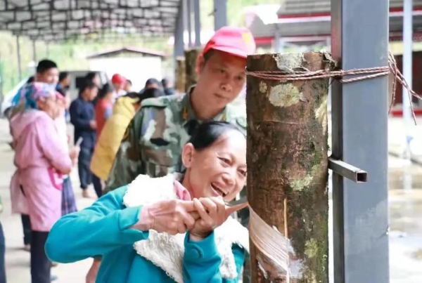 上个世纪90年代,年仅20岁的赵德珠就在南溪农场清水沟队从事割胶工作。从一无所知到成为技术能手,赵德珠付出了比别人更多的努力。为了学到本领,提升自己的割胶水平,他虚心向老胶工们请教,不分昼夜地练习,以精益求精的进取心磨砺自己。起步、行步、行刀、收刀……每一个环节都不敢马虎,确保做到精益求精。