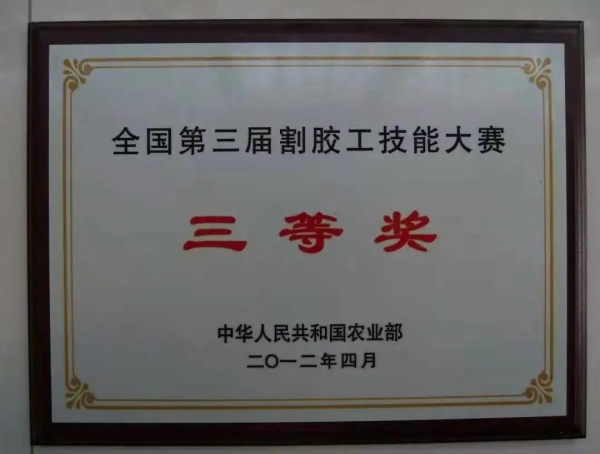 多年来,本着勤勤恳恳、认认真真的态度,赵德珠收获了荣誉,也收获了幸福。割胶对于他是一份工作,更是一份寄托。作为资深的农场人,他深知橡胶产业的兴衰关系着千家万户的幸福安康,因此他始终保持着对橡胶事业的热爱,对割胶工作的热爱,以干一行爱一行的积极心态,从容面对工作生活中的艰难困苦,在莽莽胶林中,无怨无悔地奉献自己的青春热血。