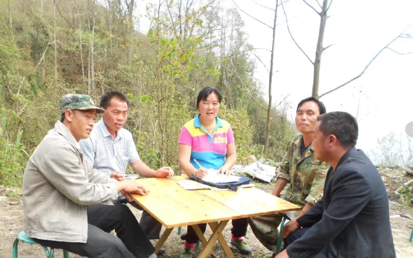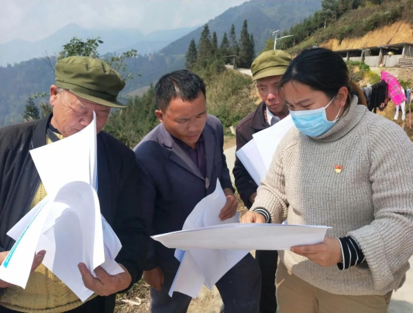杨朝芬同志带领村两委班子研究规划八角村发展