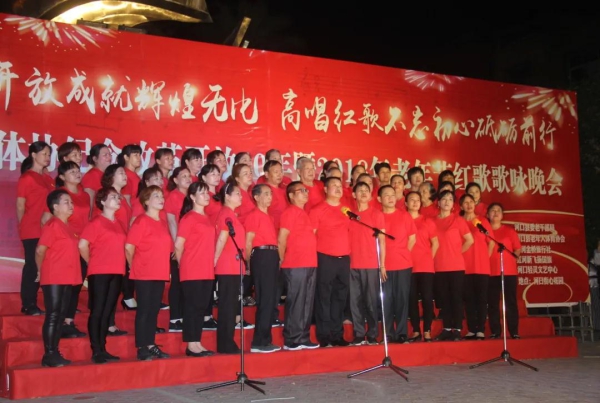 “把党的声音传递给每个人,把今天的幸福生活与大家分享”—这是河口老体协艺术团的服务宗旨,每年的“三下乡”、各种文艺晚会、跨国春晚……,他们都会精心编排节目,脱贫攻坚、扫黑除恶、乡风文明,他们都会在第一时间编排成歌舞小品,深入街头巷尾,深入边境一线村寨,传唱党的歌曲,宣传党的政策,展现国家发展的辉煌成就, 2018年以来,他们共组织参与了各种晚会联欢演出活动118场,参演人员1916人次,观众达72500余人次。每次到边境村寨都要乘车几个小时,无论是在途中还是舞台上,他们都激情满满,笑容满满,丝毫不显倦意,他们的言行感染着河口的年轻人,他们的节目得到群众的欢迎和喜爱,他们是边境线上的一面旗帜,大家都称他们是新时代的“宣传员”。