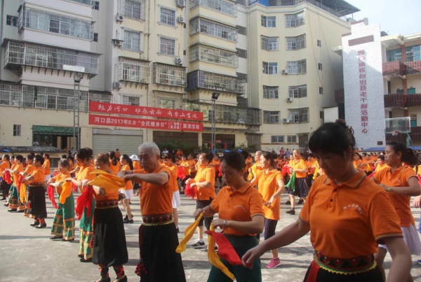 在河口,你可以看到游走在街道上的“红马甲”,可以看到球场上身体矫健的“白头发”,可以看到傍晚河堤上翩翩起舞的“美女大妈”“帅气大叔”,他们大多是河口老体协的会员,他们让河口这座边境城市越来越美丽。