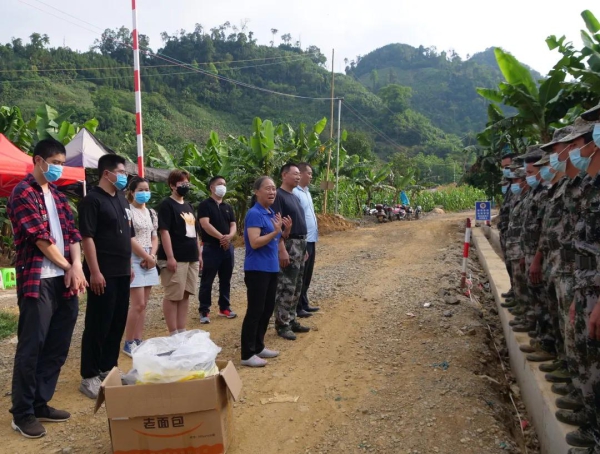 丁莲先后到河口县瑶山乡、南溪镇、桥头乡,沿着国境线看望慰问疫情防控卡点的执勤人员,每到一处,她都倡议爱心团队向执勤人员鞠躬,向他们长期为国守边致以崇高敬意。