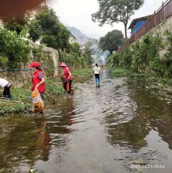 自党史学习教育开展以来,南溪镇以集镇整治“百日攻坚”为切入点,用实际行动践行学党史、悟思想、办实事、开新局,广泛动员号召社区群众参与其中,全方位持续发力,全力整治集镇环境卫生。4月23日,振南社区组织支部党员、社区群众等20余人,分组对河道进行清理,通过共同努力,垃圾被一点点铲除,倒入垃圾清运车;河中的白色垃圾、残枝败叶被捡拾,环境卫生焕然一新。(南溪镇 姜燕)