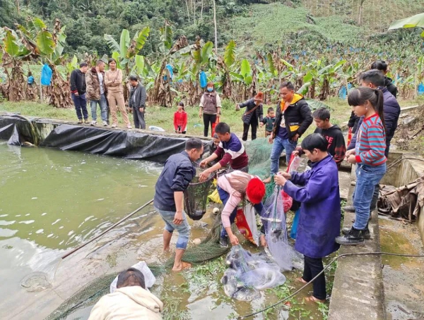 原始森林环绕,潺潺山泉依山流淌。走进安家河村,俨然一个世外桃源。在脱贫攻坚大会战中,河口县立足村寨实际,围绕 “发展产业脱贫一批”的思路,发展“一村一特色、一渔一品牌”,依托河口南溪山谷水产养殖农民专业合作社,大力发展中华杂交鲟鱼、鸭嘴鲟、黑鱼、娃娃鱼等珍贵鱼种养殖,以“公司+党总支(村集体)+村小组+农户”的发展模式,先后通过以奖代补和新型经营主体经济入股等方式,使安家河村195户699人贫困户全部入股鲟鱼场,并实现了首次分红,每股获利800元,为贫困户受益作出了贡献。而作为安家河村的致富带头人、安家河村的党总支书记李兵妹也在脱贫攻坚的道路上充分发扬党员干部的先锋模范作用,成了远近闻名的“金花书记”。